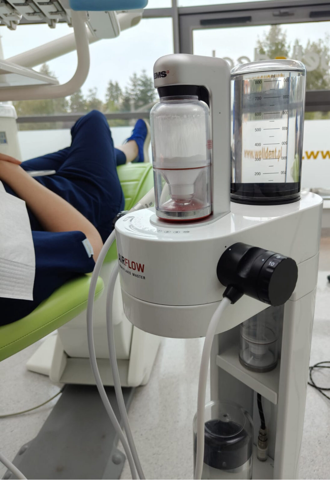 •     piaskowanie – oczyszczanie zębów z osadów za pomocą strumienia wody, powietrza i drobnych cząsteczek piasku;